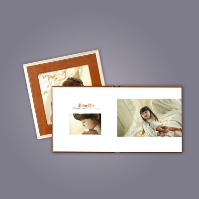 实木相框,高档PU封面,200克高档铜版纸压纹,环保夹层